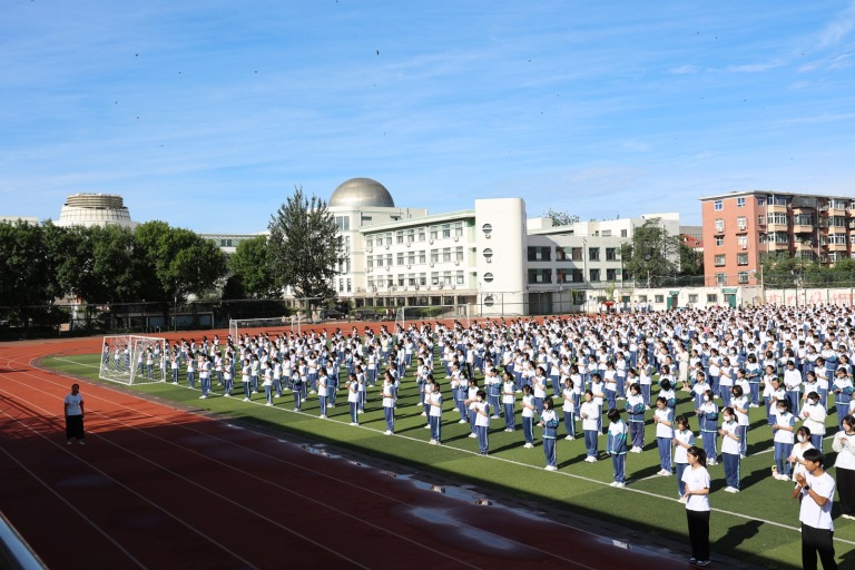 在津门古渡喜迎“上合”之际,天津三中学子以崭新的面貌迎接新学年的到来。8月28日清晨,在清新的秋雨过后,天津三中2025-2026 学年第一学期开学典礼在三个校区有序举行。学校党政领导班子成员、各中层干部悉数到场,全体师生精神抖擞,迎接新学期的到来。
