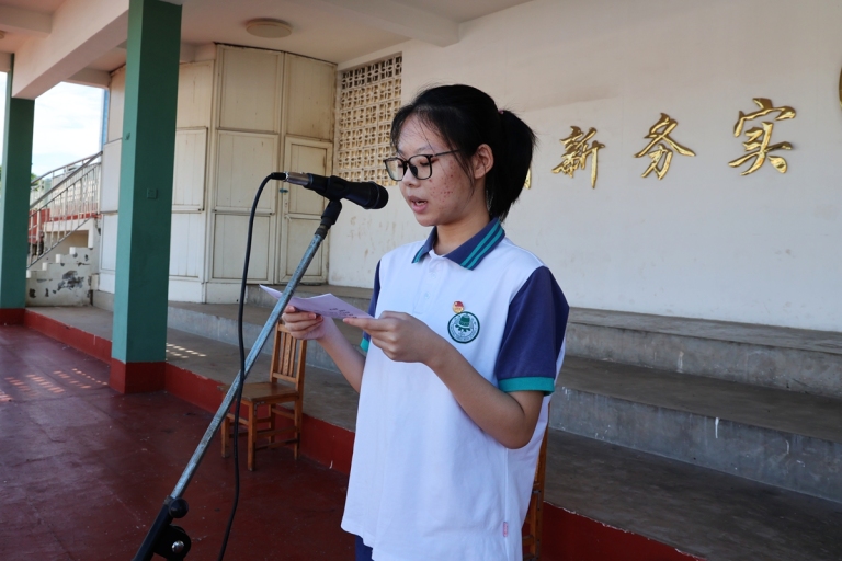 七年级的学子们刚刚走进中学,七年级新生代表欧阳培欣、白文涵的发言中满是对中学生活的憧憬和努力奋斗的决心。