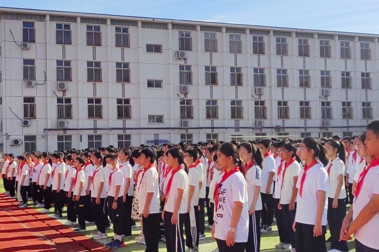 伴随着雄壮激昂的中华人民共和国国歌,五星红旗冉冉升起,典礼正式拉开帷幕。晨光下,学子们目光灼灼凝视国旗,嘹亮的歌声穿透校园,教师们站姿挺拔,神情庄重,那份对祖国的崇敬与对新学期的期待,在这一刻悄然凝聚。