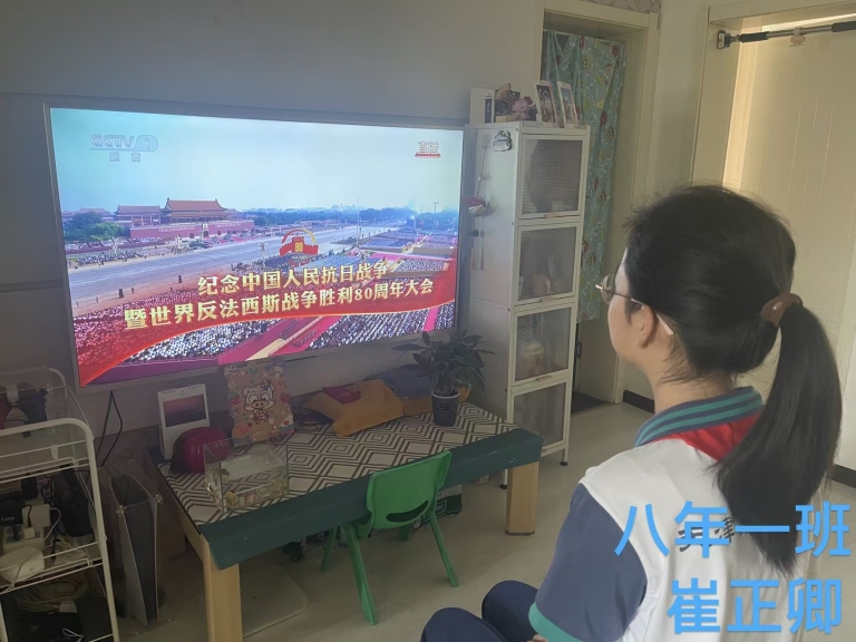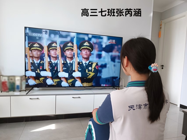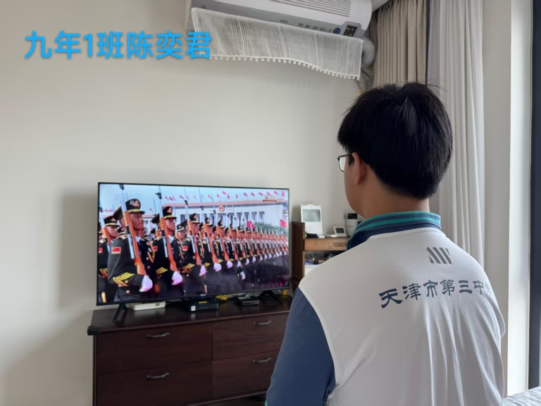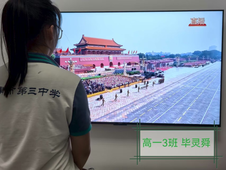 为铭记历史、缅怀先烈、珍爱和平、开创未来,深刻感受国家富强、民族振兴的宏伟气象,激发全体师生的爱国热情和民族自豪感,天津市第三中学组织全体师生收看此次阅兵式直播。