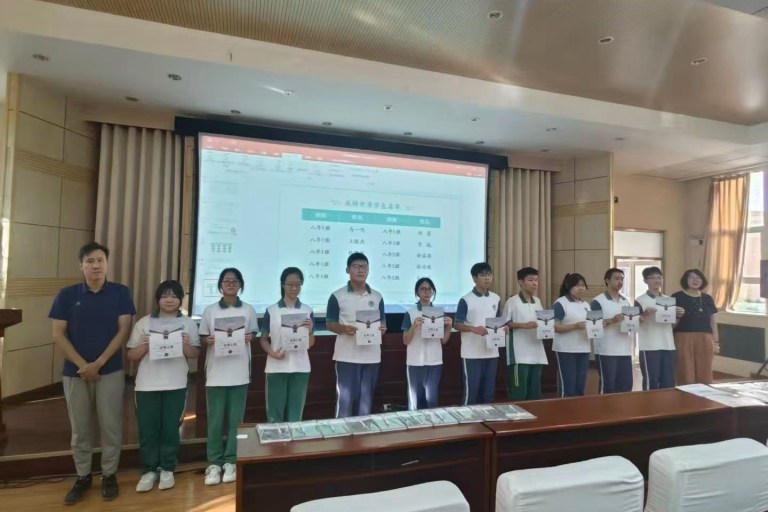 大会伊始,年级组长陈欣欣老师和靳颖老师宣读表彰名单并为获奖学生颁发奖状。