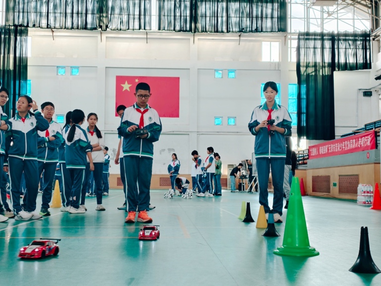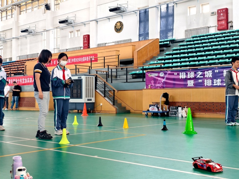 随后的体验环节成为全场焦点。天津市少年宫带来了人形智能机器人展示。机器人随着音乐起舞,灵活的关节转动引来各学段学生阵阵欢呼,工作人员结合初、高中知识层次,分别讲解传感器与编程的基础原理及进阶应用;无人机操控体验展区内,学子们分组操控机型完成盘旋、编队等特技动作,直观理解空气动力学在不同学段的知识延伸;微型编程机器人摊位前,初中生组队调试设备完成基础避障任务,高中生则尝试设计复杂搬运程序,共同体验代码创造的乐趣;模型车操控体验赛道上,各年级选手专注操控车辆穿梭障碍,在竞技中感受机械与速度的融合;创新思维即时挑战体验区结合3D打印技术,学生们根据学段认知设计制作不同难度的小模型,实现创意与劳动实践的深度结合。