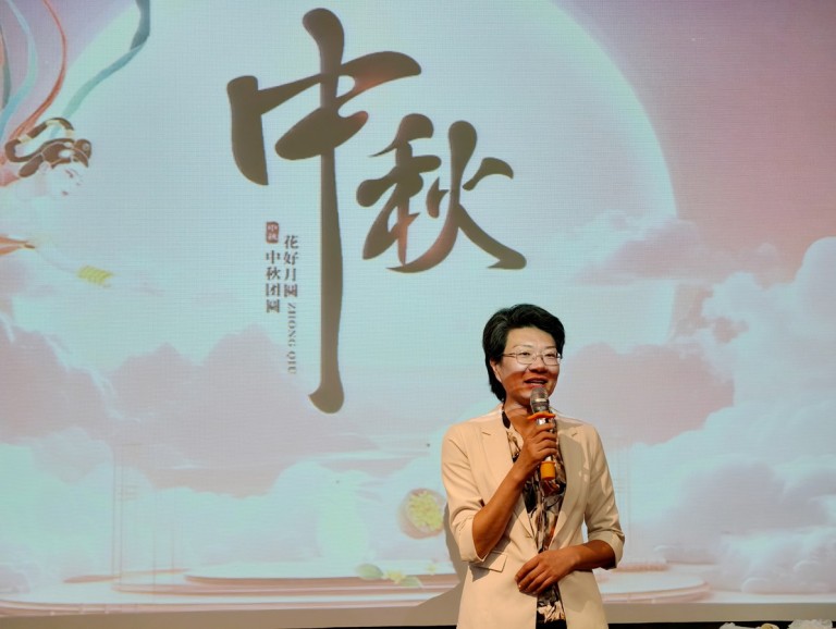 天津市第三中学校长李娜代表主办方向全体来宾致以诚挚的欢迎和节日的问候,李校长介绍了本次“中秋韵·校际情·共团圆”中秋活动的初衷,希望通过本次活动进一步联结家校情、师生情以及学生和家长的亲情,强调了校际交流在推动区域教育融合发展中的重要意义。