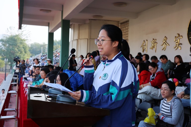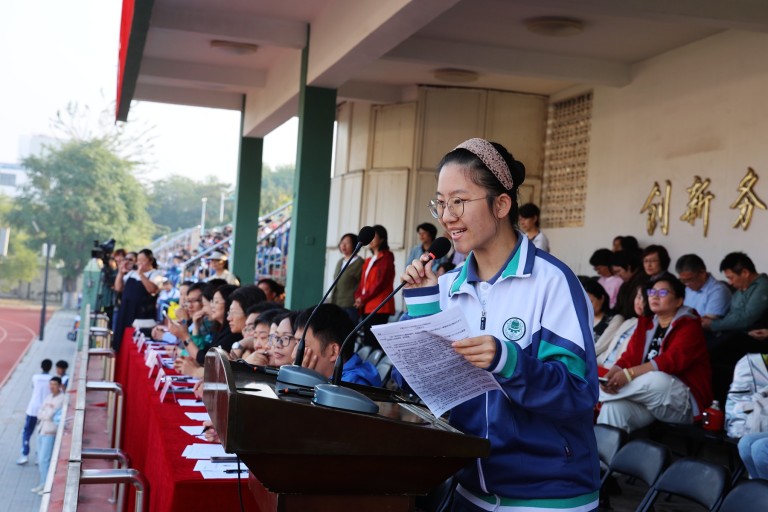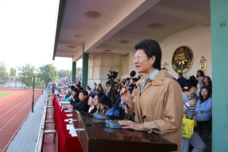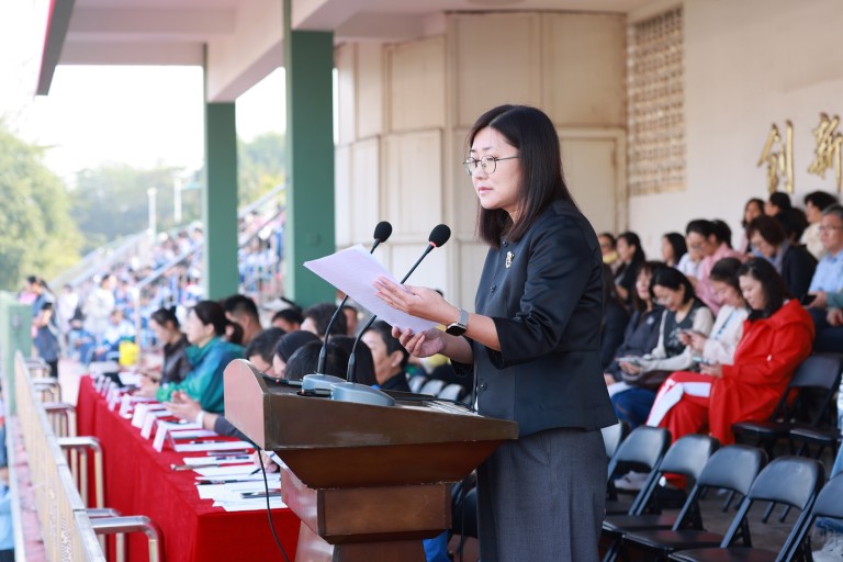 李娜校长致开幕词。她深情寄语同学们,要将体育精神融入学习与生活,成长为全面发展的新时代少年,为实现强国梦贡献力量。