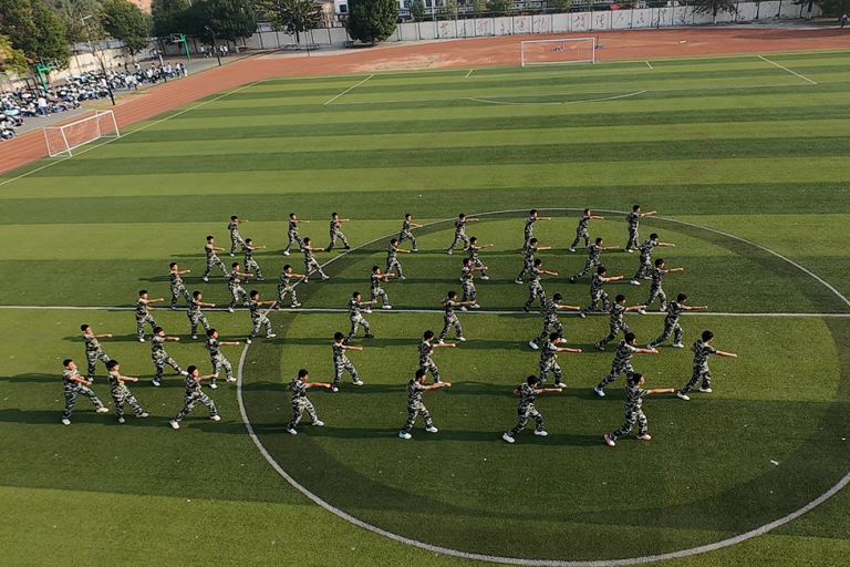 各班级方阵创意无限,将体育精神与多元文化巧妙融合,把青春朝气与班级特色展现得淋漓尽致。有的方阵步伐铿锵、队列齐整,抬头挺胸间尽显严谨与朝气,口号声洪亮有力,似要冲破云霄;有的方阵创意十足,从传统非遗元素到现代科技主题,以巧思勾勒出独特的班级文化,宛如一幅幅绚丽多彩的画卷;有的方阵氛围热烈,同学们脸上洋溢着灿烂的笑容,行进间满是轻松愉悦,感染着在场的每一个人。
