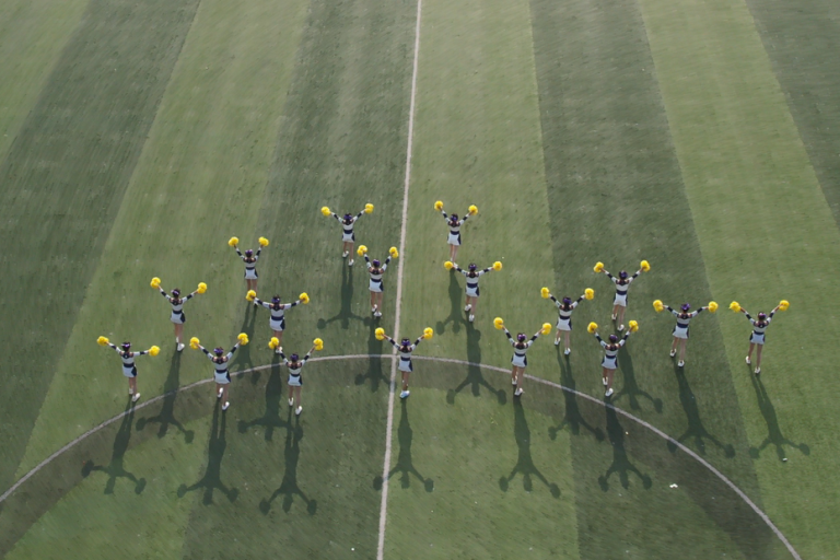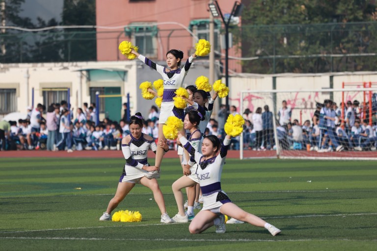 啦啦操队员们伴随着欢快激昂的音乐,迈着整齐的舞步登场,抬手、跳跃、旋转间动作精准同步,队形变换如流水般顺畅。她们用灵动的舞姿、饱满的热情,将青春的鲜活与团队的默契展现得淋漓尽致,成为开幕式上一道令人眼前一亮的亮色。