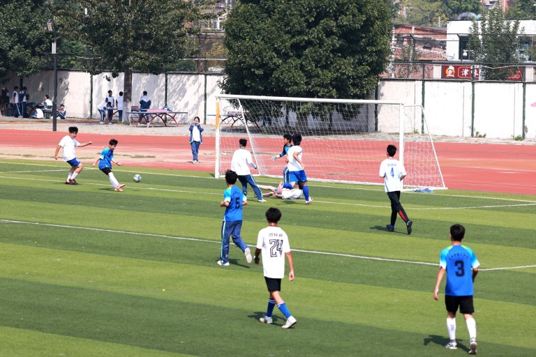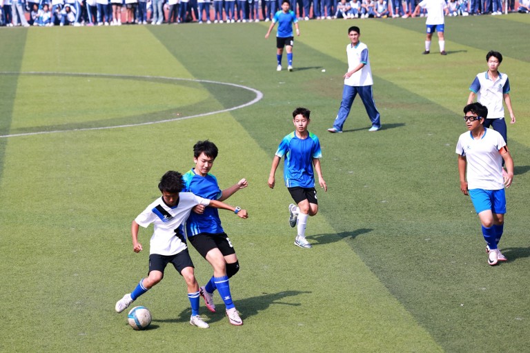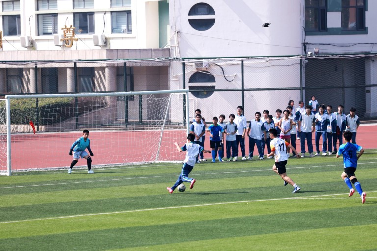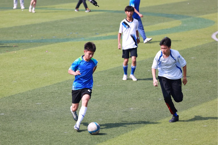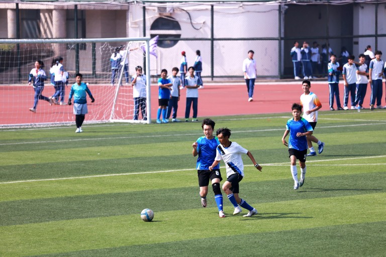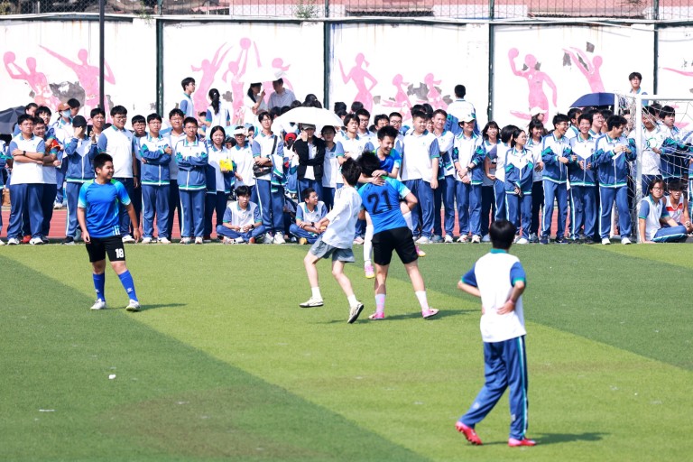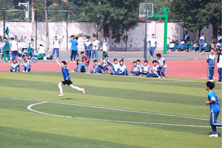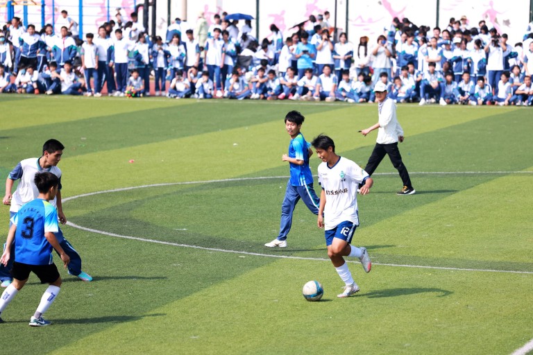 闭幕式前的足球友谊赛将气氛推向新的高潮。校队的球员们沉稳控球,你来我往的攻防中,没有输赢的执念,只有运动的快乐与友谊的互动,诠释了“友谊第一,比赛第二”的体育精神。
