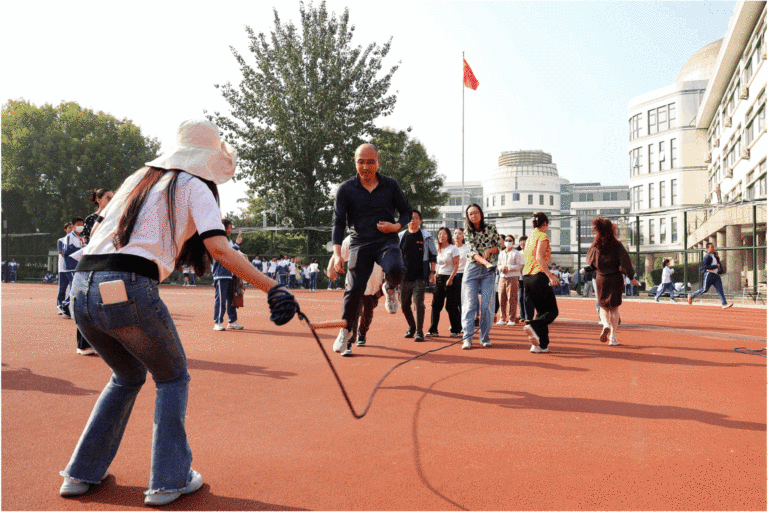 教职工赛事同样亮点纷呈。各项趣味活动激烈角逐,引得学生们阵阵喝彩。师生互动的温馨画面,如暖阳般温暖了整个赛场,展现了天津三中和谐融洽的师生关系。