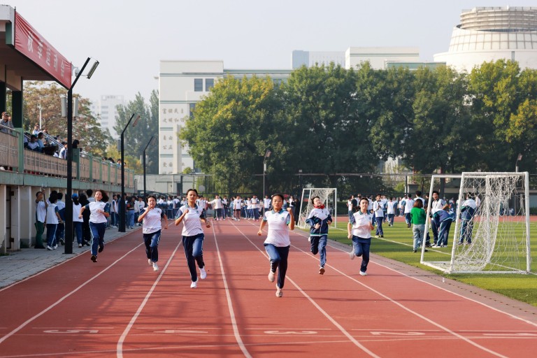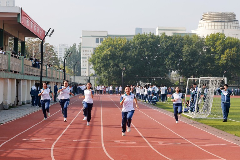 教职工方阵的登场,引得全场欢呼雀跃。老师们暂别讲台的严谨,步伐中满是活力与温情。他们以行动诠释着“终身运动”的理念,成为赛场上别样的风景。他们昂扬的精神状态,彰显着天津三中教师立德树人、培根铸魂的教育追求,诠释着奉献的初心。