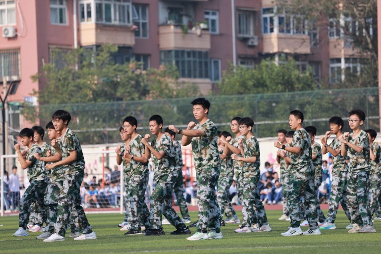 每个方阵风格各异,却都透着少年们的蓬勃朝气与对盛会的热切期待,成为运动场上一道流动的青春风景线。