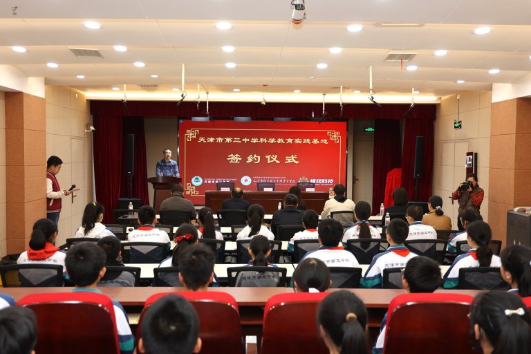 2025年10 月 20 日下午,天津市第三中学、天津市红星职业中等专业学校与蜂铭科技(天津)有限公司三方科普教育基地签约落成暨首场科学教育研学活动在红星职专实训中心举行。三方相关领导、教师,来自河北省沧州的跟岗交流干部、教师及天津三中七年级的师生共同参加了此次活动。