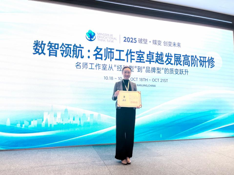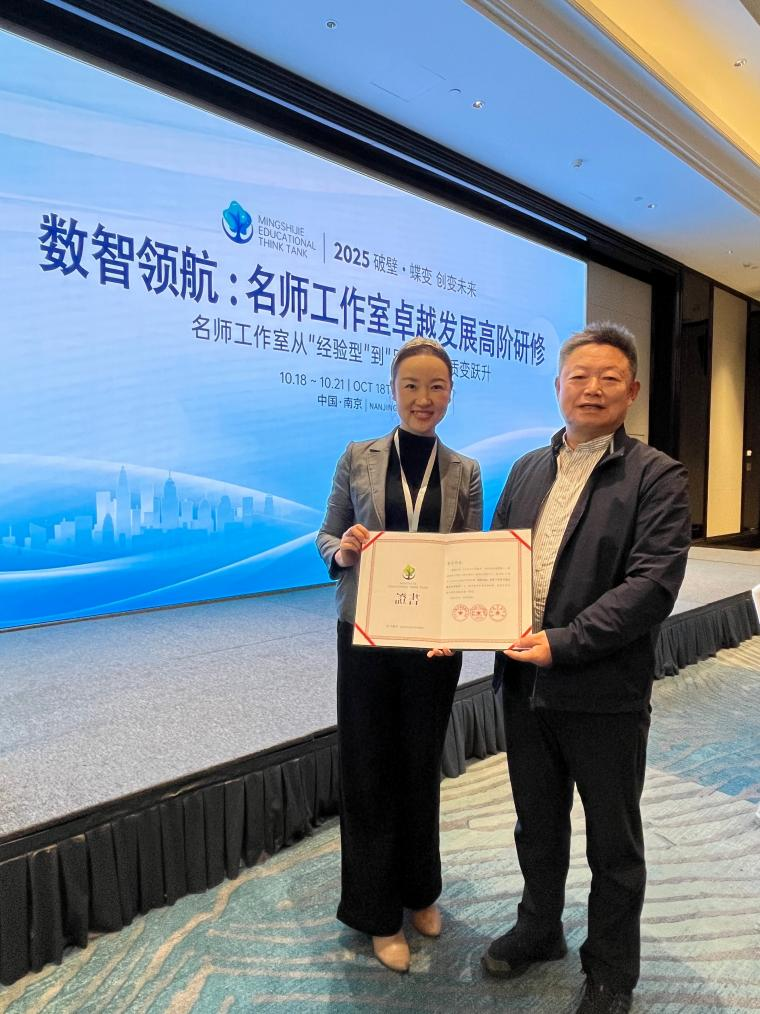 2025年10月21日,为期四天的“数智领航:名师工作室卓越发展高阶研修”在南京圆满落幕。我校高中语文正高级教师、天津市市级学科骨干吕洁,作为红桥区代表参会,并在工作室建设规划方案征集与成果展示现场评比中斩获一等奖,为区域教育争光添彩。