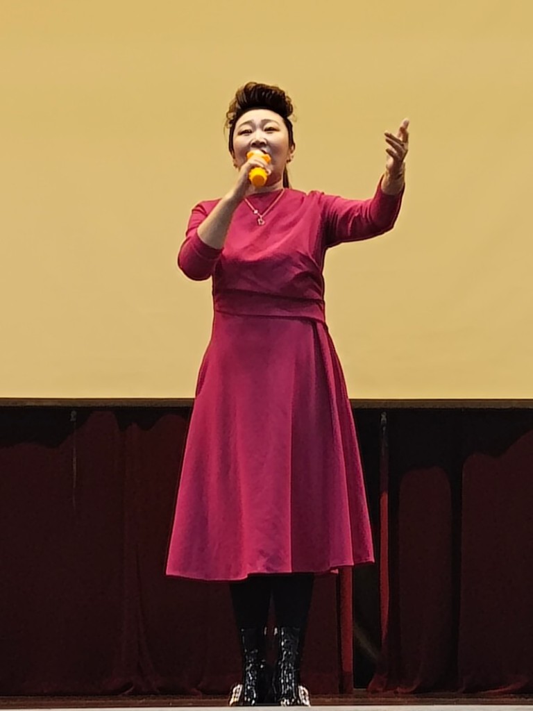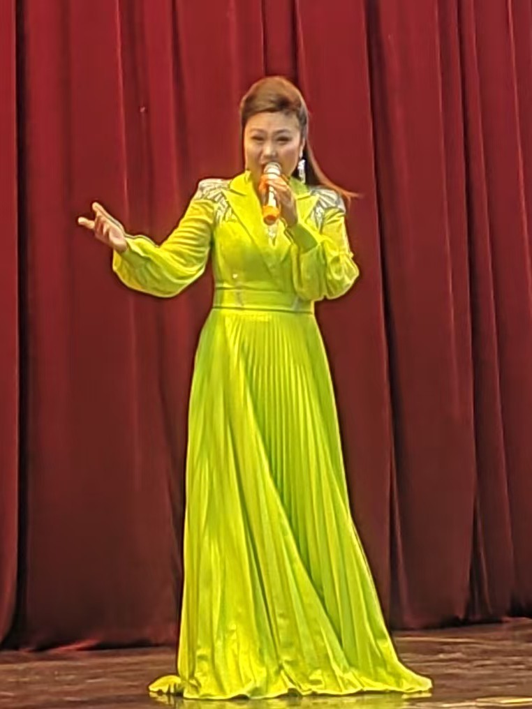 女高音歌唱家宋克宁老师带来了《灯火里的中国》,歌声舒缓流畅,宛转悠扬。男中音歌唱家王来带来《跟你走》《鸿雁》,乐曲慷慨激昂,振奋人心。女高音歌唱家张晏蓉老师演唱的《没有祖国哪有我的家》《共圆中国梦》以清亮柔美的嗓音唱响家国情怀,引发观众强烈的情感共鸣。女高音歌唱家曲芮金老师带来《五星红旗》《红梅赞》,歌颂新时代伟大成就,催人奋进。伴随着激情昂扬、欢快热烈的旋律节奏,观众们情不自禁地用掌声打起节拍,乐声与掌声交相辉映,全场化为一片跃动的声浪海洋。最后,全体演员合唱《我爱你中国》把现场的气氛推向高潮。