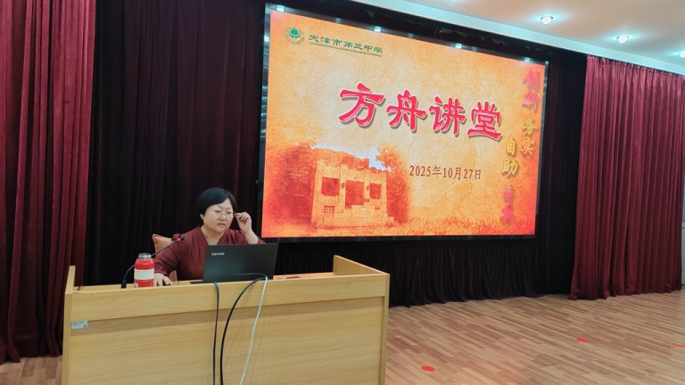 为帮助中学生化解成长困惑,引导学生正确认识自我、积极应对焦虑,2025 年 10 月 27 日,我校特邀天津市安定医院马晓燕博士做客“方舟讲堂”,开展以“不断突破自我的局限”为主题的心理健康专题讲座,高一年级全体学生现场聆听。