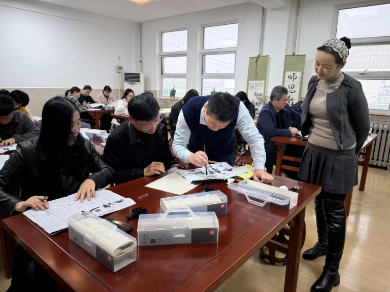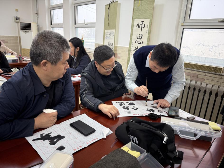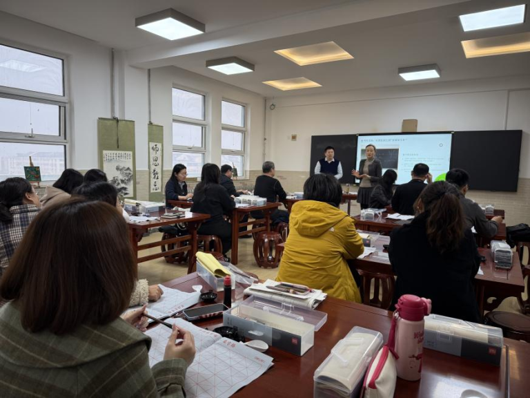 活动特别设置了自主书写环节,与会教师根据詹老师的演示,现场进行软笔和硬笔的字体书写训练。江西校长团的成员也积极参与其中,与天津三中的教师们共同交流展示自己的书写心得和文字作品,探讨板书设计的创新思路。副主任吕洁在总结时指出,此次研修活动不仅是一次教学技能的培训,更是一次教育理念的碰撞与融合。