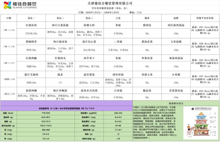 天津市第三中学学生营养餐食谱(2026.1.4-2026.1.10)