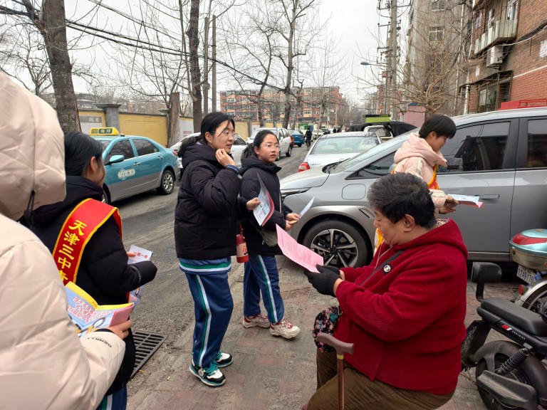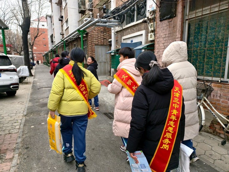 新春将至,年味渐浓。近日,天津市第三中学“方舟小分队”的同学们,迎着冬日的晨光,走进丁字沽街胜灾社区,开展了一场别开生面、温暖人心的志愿服务暨安全宣传活动。此次活动由胜灾社区、属地派出所、交通支队与我校精心策划、协同组织的“四方联席”共建活动,旨在将安全教育与文明实践深度融合,为社区居民送去一份特殊的“新春平安礼”。