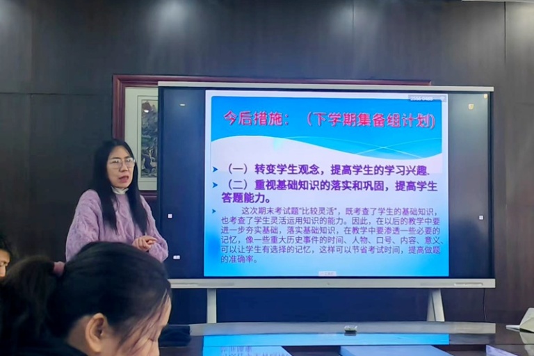 八年级语文集备组长刘丽晶和陈红玉两位老师提出下学期将强化集体备课,以此提高课堂教学效率。同时,密切关注学生的听课状态,确保学生全身心投入课堂。注重基础知识的扎实落实,并加大名著阅读推进力度,引导学生关注原著细节,提升文学素养,为毕业班的衔接打下坚实的基础。