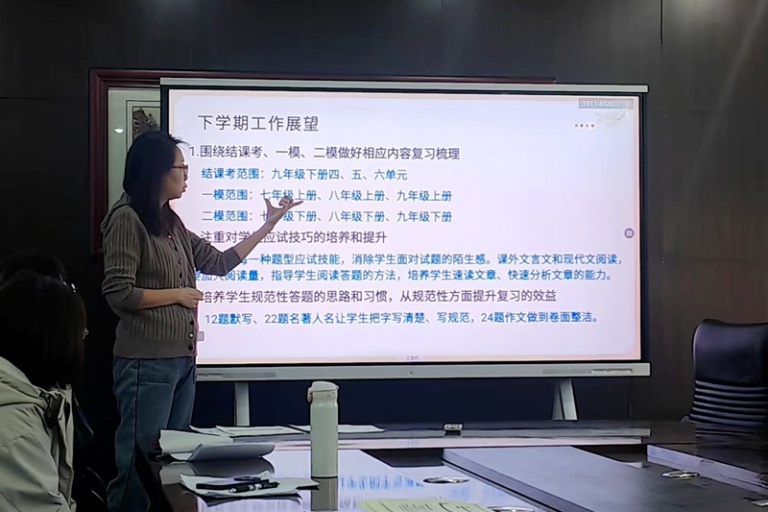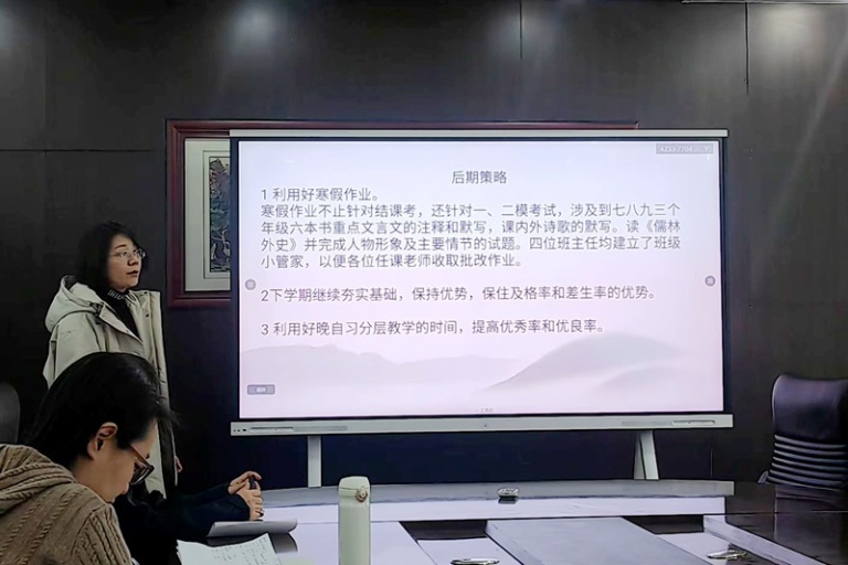 九年级语文集备组的两位组长王艳霞和卢孟远老师通过对期末检测每道题得分情况的细致分析发现,在助推学困生提高成绩方面取得了突出成效。未来,语文组将在现有基础上,进一步加强对绩优生的扶助与推动,力争在单科成绩上再创亮点。面对“最短”春季学期的紧迫形势,语文组计划将一模、二模考试的复习内容前置到寒假,整合各班突显的问题,引导学生自主复习回顾,为结课考后的集中复习筑牢基础。