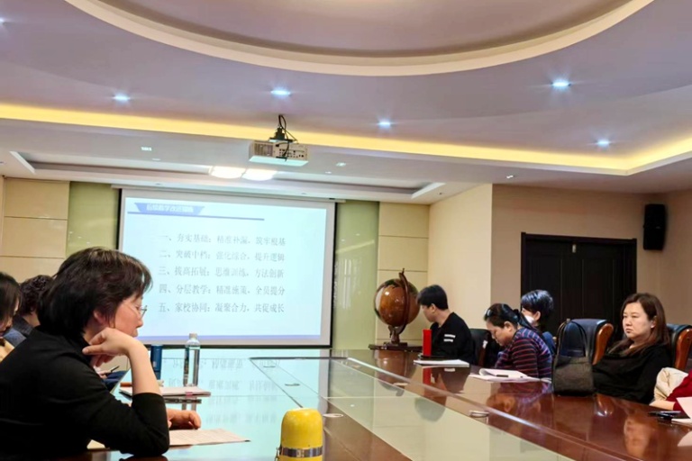 九年级数学集备组的两位组长高崇莲和李泉老师对本学期的四次考试成绩以及各类题型、各知识点的掌握情况进行了深度剖析,精准总结出本学期教学过程中的优势与不足。优势之处在于部分基础题型讲解扎实,学生掌握较好;不足则是难题突破能力欠佳、知识综合运用能力薄弱。面对出现的困难,集备组深入研讨,群策群力共商突破困难的解决办法,利用假期精准分层,严格落实、共同推进推优与补差目标,精算课时、提前谋划、合理安排下学期的冲刺内容,为后续成绩的提升提供持续动力。